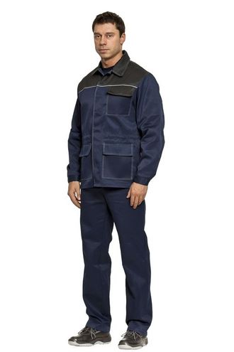 Куртка и брюки. Куртка с супатной застежкой на пуговицы, со световозвращающим кантом и световозвращающей полосой на спинке. Брюки с боковыми и задними карманами.